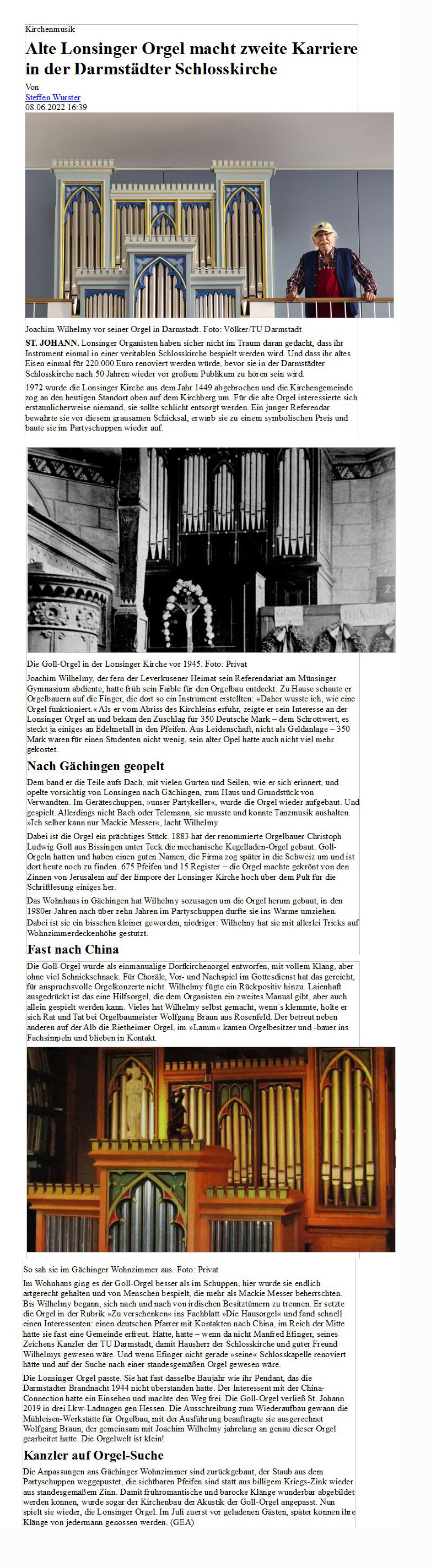 Alte Lonsinger Orgel macht zweite Karriere - Reutlinger General-Anzeiger