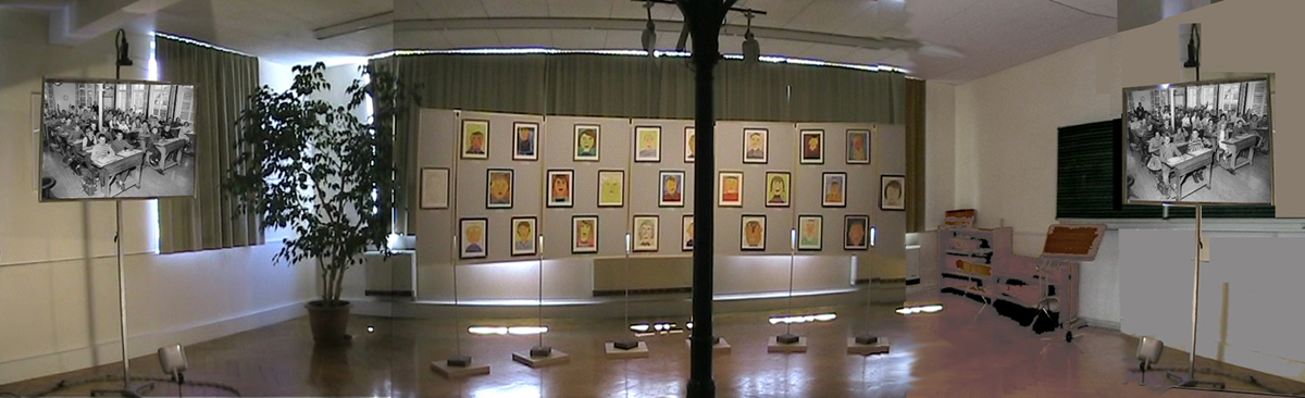Die erste Ausstellung im unteren Klassenzimmer 2017 mit den Selbstportraits der Schüler aus dem Jahr 1964