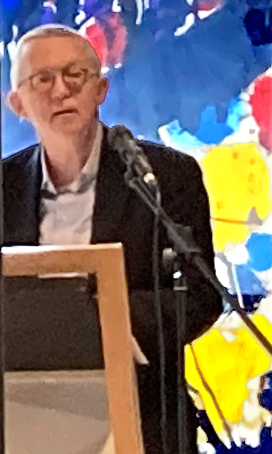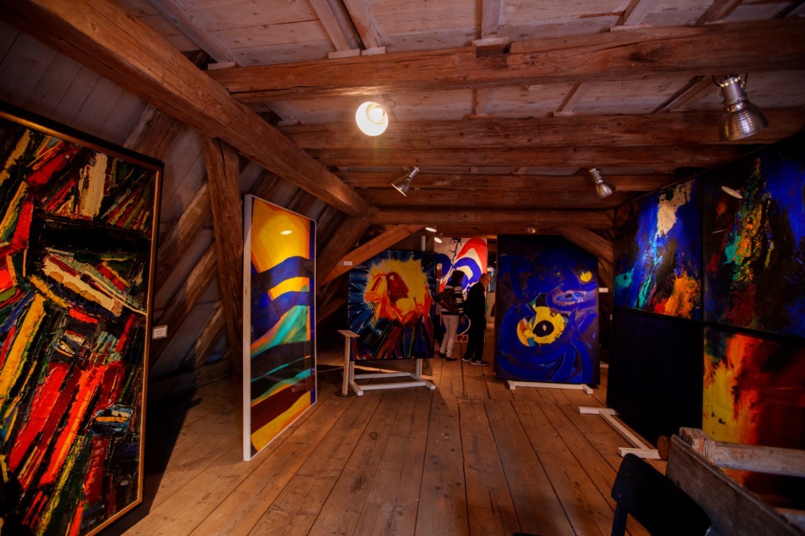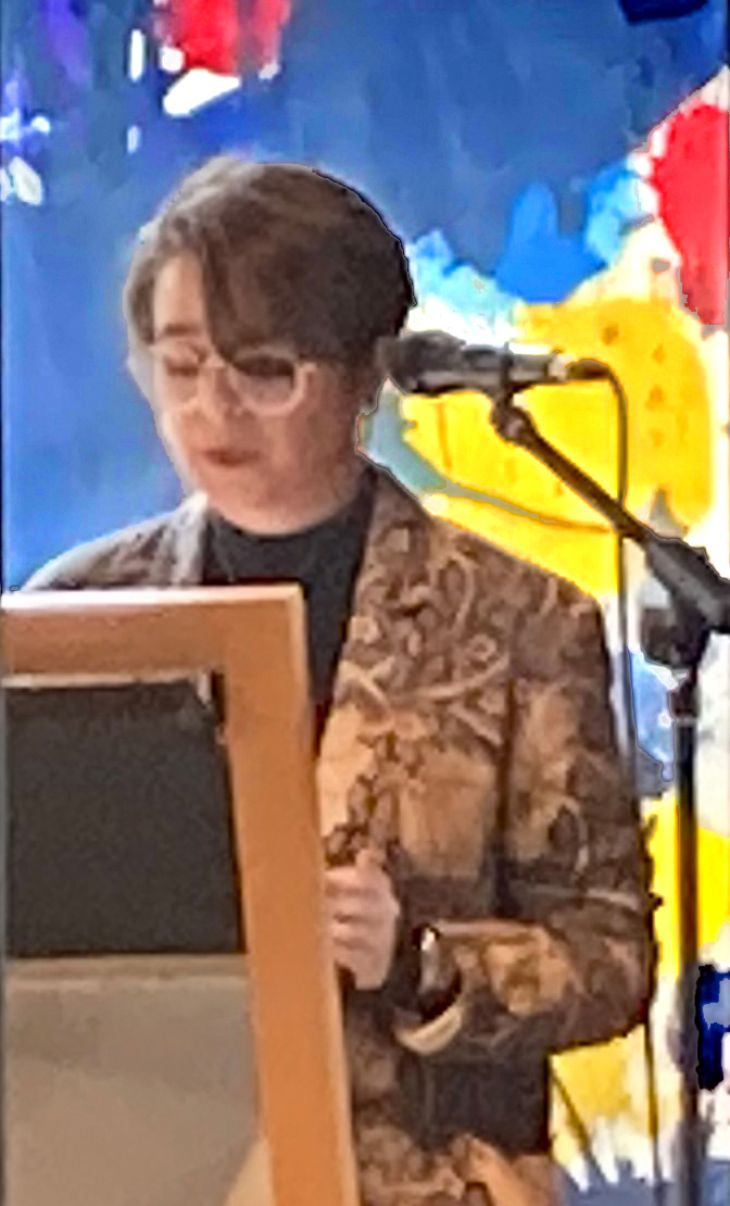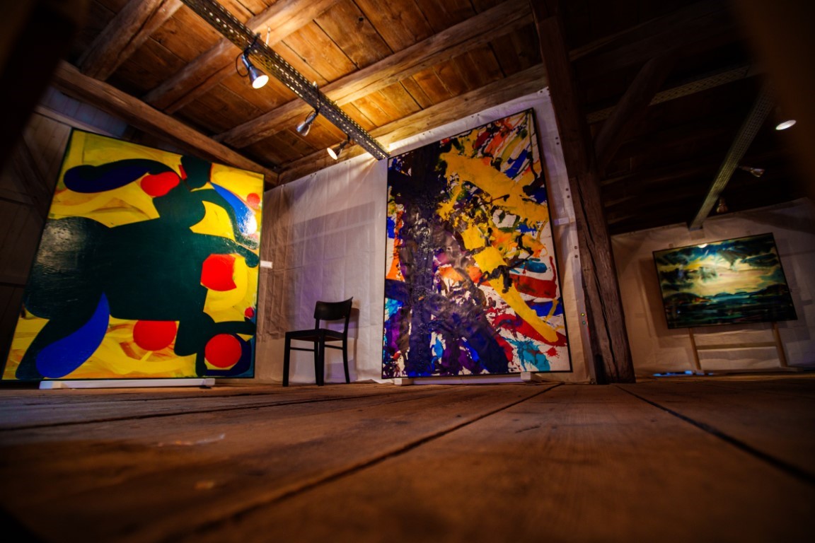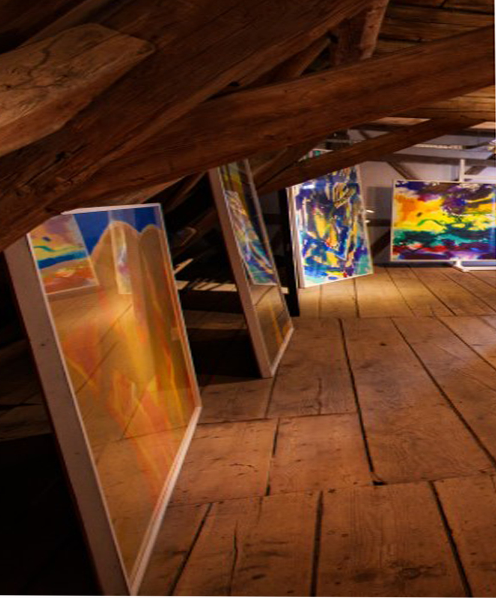 ![]() Musikalische Einlagen; Klavierduo Hayashizaki-Hagemann | ![]() Viererturm in der Eingangshalle | ![]() Für die Vernissage als Hintergrund aufgeklappt. Frau von Hirscheydt bedankt sich zusammen mit ihren Söhnen bei den Kuratoren |