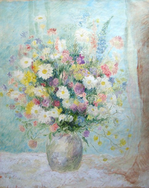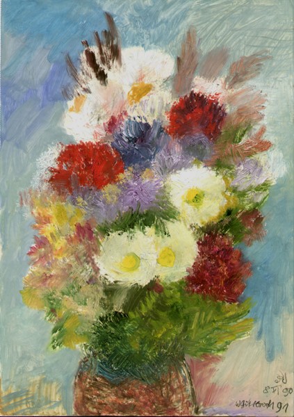 ![]() 1980 Öl 110x55, Landschaft | ![]() 19989 Öl 195x98, Unter Leuten | ![]() 1990 Öl 42x30, Blumenstrauß |